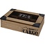 Een houten theekist met 6 vakken voor het overzichtelijk opbergen van de theezakjes Deksel is ingelegd met metalen gaas met daarop het woord ...