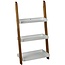 De staanders van dit opbergek zijn gemaakt van bamboe en de schappen van wit gelakt MDF